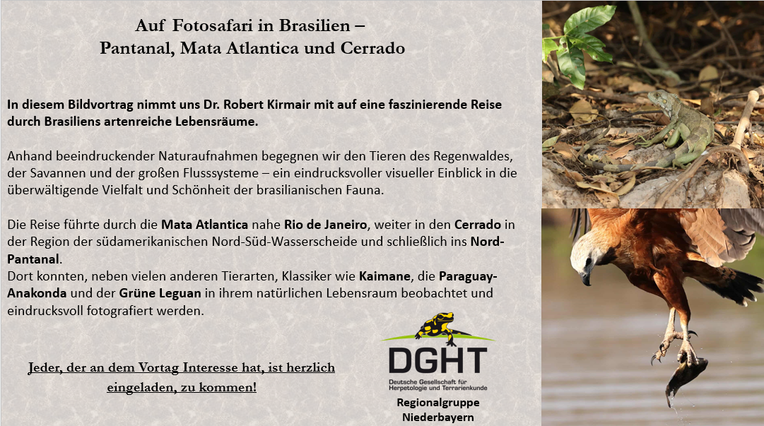 In diesem Bildvortrag nimmt uns Dr. Robert Kirmair mit auf eine faszinierende Reise durch Brasiliens artenreiche Lebensräume.