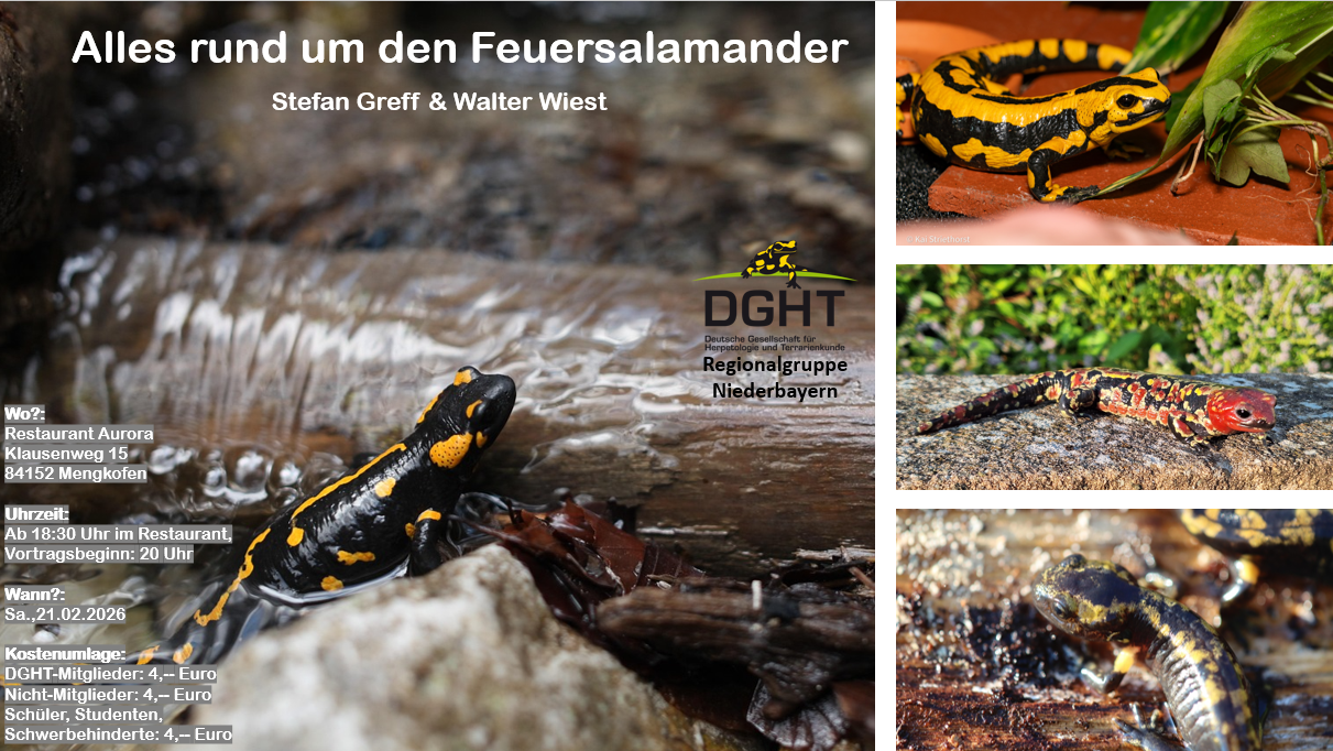 Die beiden Urodelen-Experten Walter Wiest aus Neckartenzlingen und Stefan Greff aus Frankfurt nehmen die Besucher mit auf eine spannende Reise durch die Geschichte dieser Art, ihr Leben in freier Wildbahn sowie die fachkundige Haltung und erfolgreiche Zucht in menschlicher Obhut.